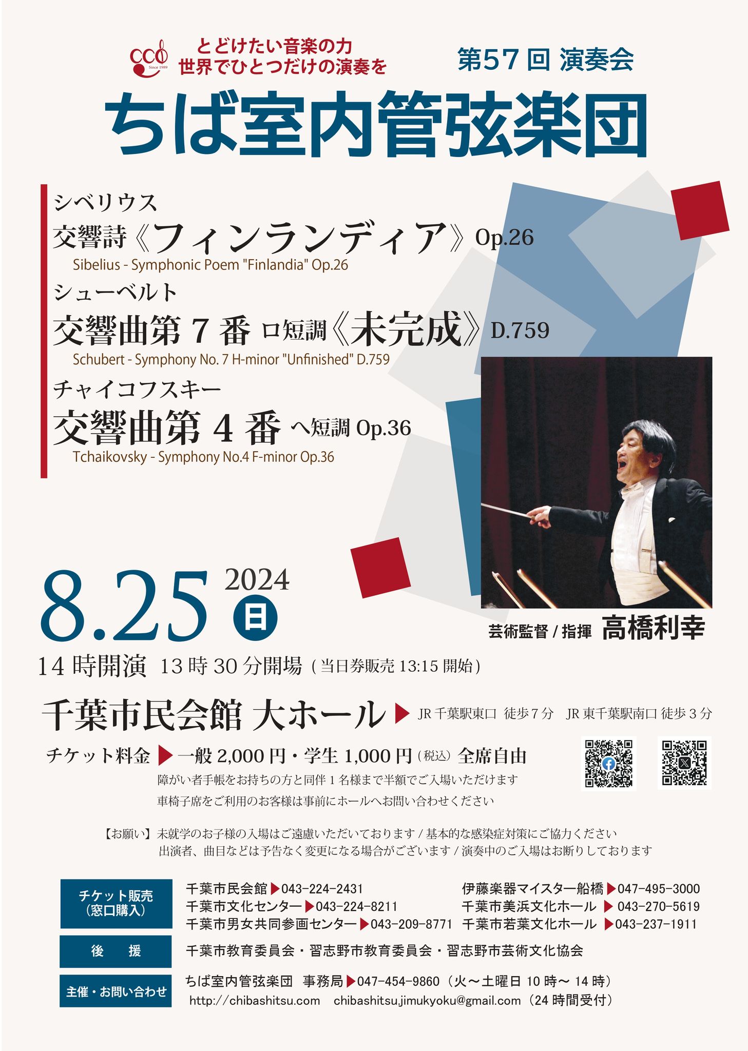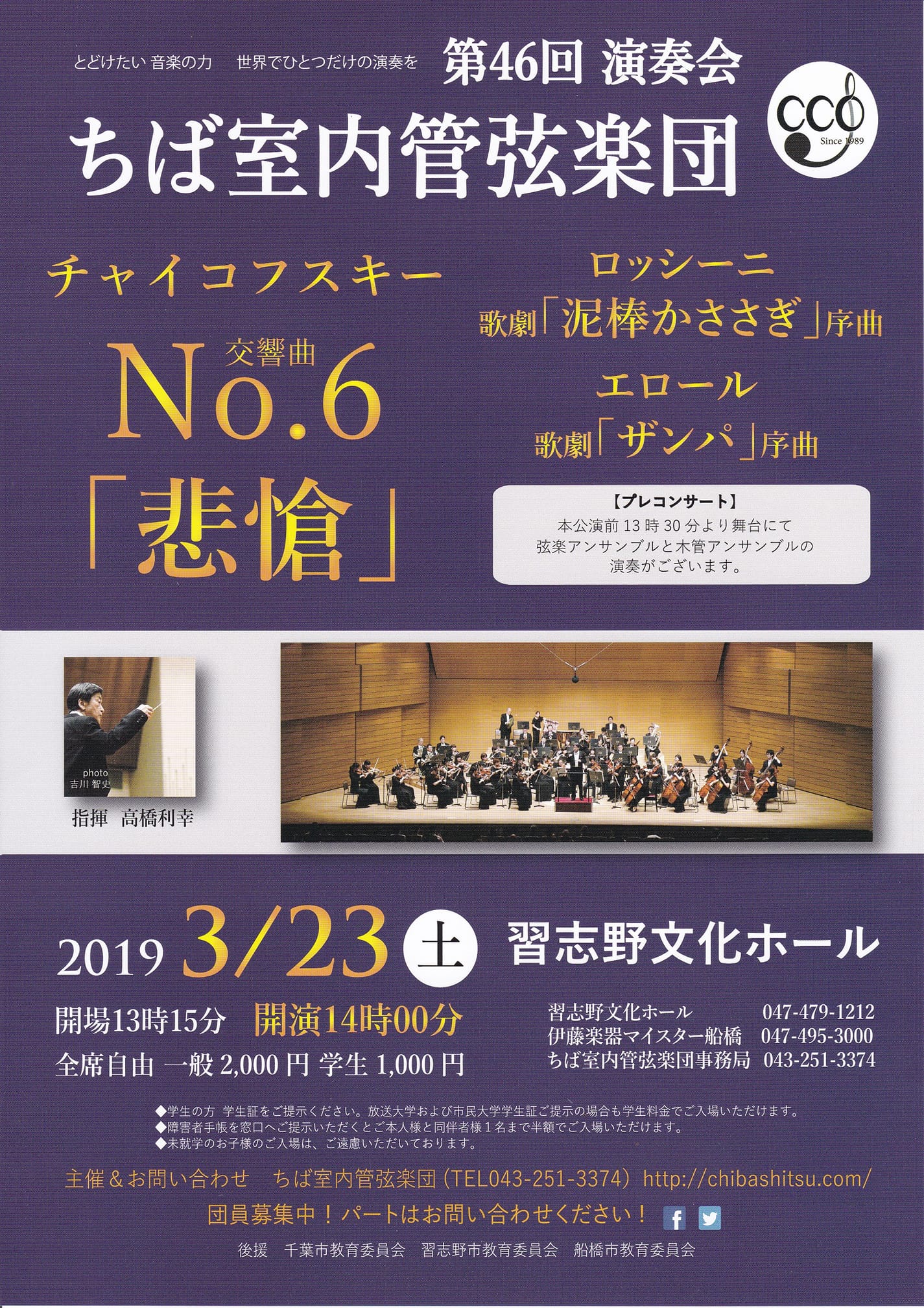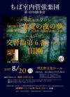 習志野文化ホールの改修工事に伴い,次回は千葉市にて演奏会を開催いたします。皆さまのご来場を心よりお待ち申し上げております。 |
